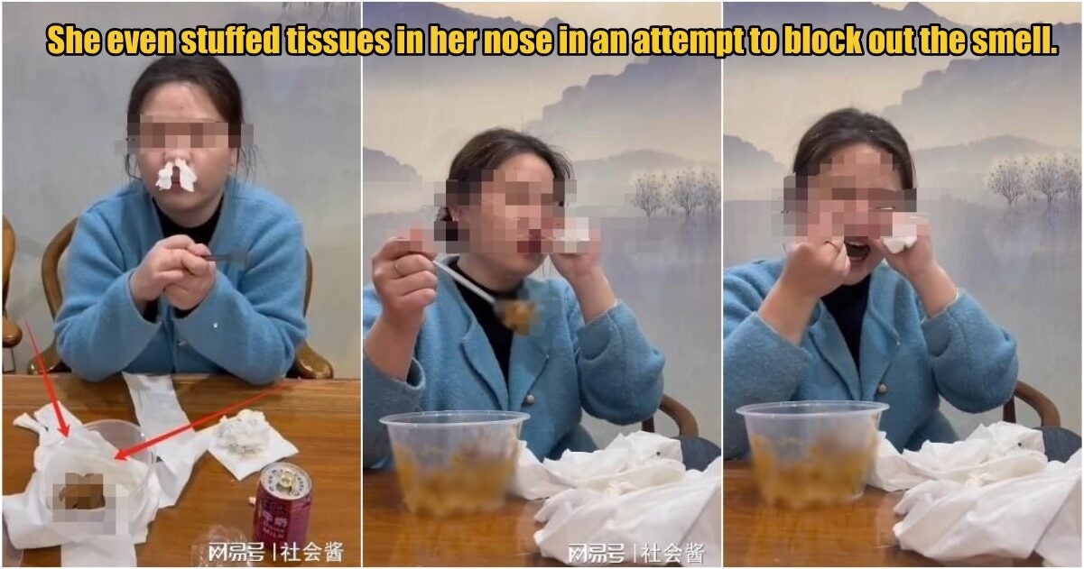 A video has since been making the rounds on the internet, which showcases the woman sitting at a table and eating what appears to be faeces. She even stuffed tissues in her nose in an attempt to block out the smell.