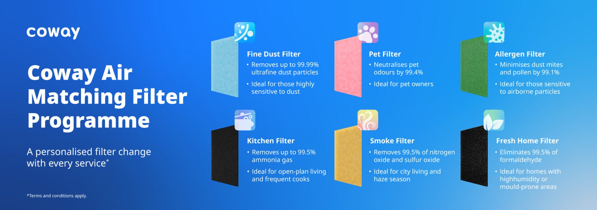 *Coway Air Matching Filter Programme is exclusively available for Heart Service subscribers. Terms and conditions apply.
