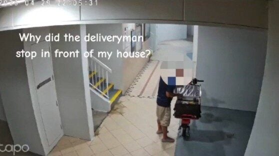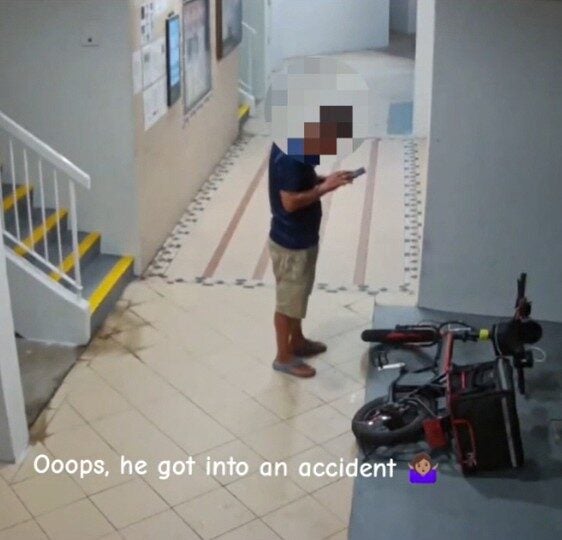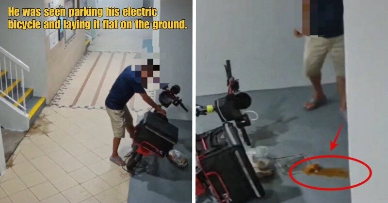 Based on the CCTV footage shared by @bananagiant on TikTok, the delivery man was seen parking his electric bicycle and laying it flat on the ground.