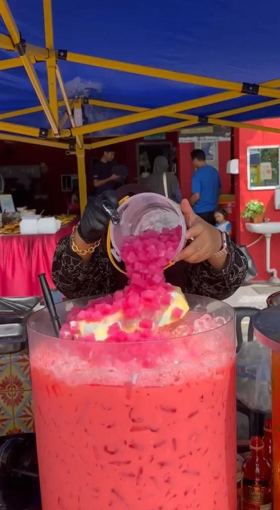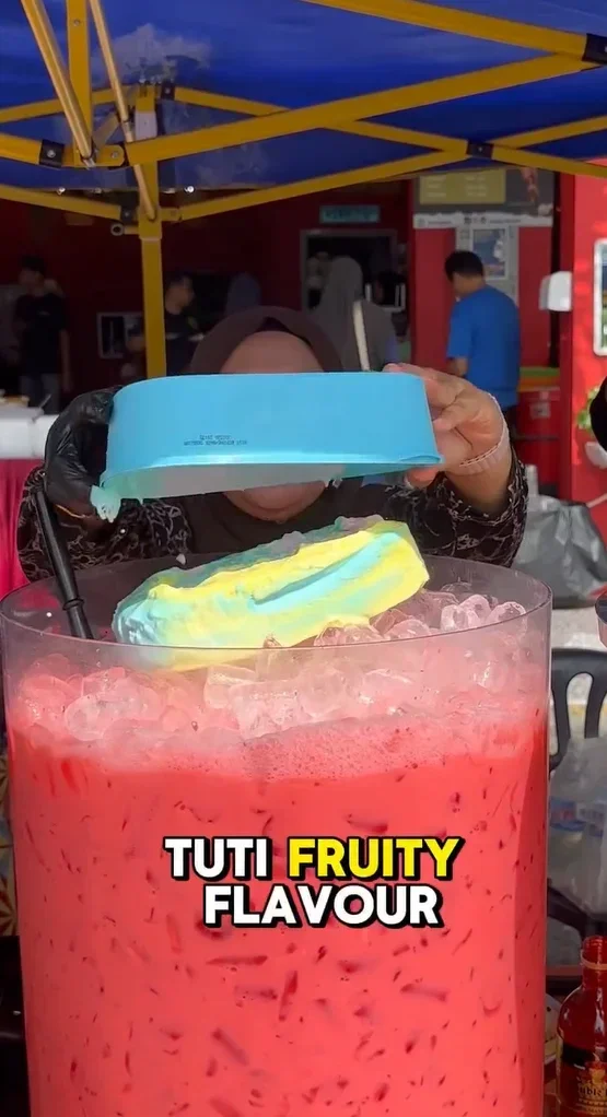 After adding ice cubes, an entire tub of fruit-flavoured ice cream was added in and topped with strawberry-flavoured Nata De Coco as the finishing.