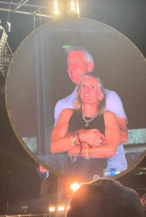 The band’s signature “Kiss Cam” captured Byron, who had Kristin Cabot, Astronomer’s Chief People Officer, being comfortable in her arms, until they decided to turn away from the camera instantly. Their actions prompted Chris Martin, the lead singer of Coldplay jokingly respond,