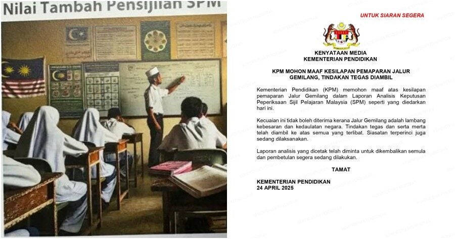 The Ministry of Education (MOE) issued a public apology over an error involving the display of the Jalur Gemilang in the Sijil Pelajaran Malaysia (SPM) examination results analysis report that was released on April 24.