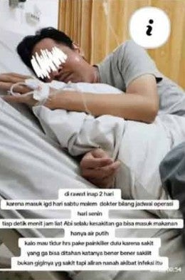 His wife, Amanda Prawiria, shared the story on TikTok and said that even though he was in pain, he only took painkillers to deal with it, as reported by Sinar Harian.