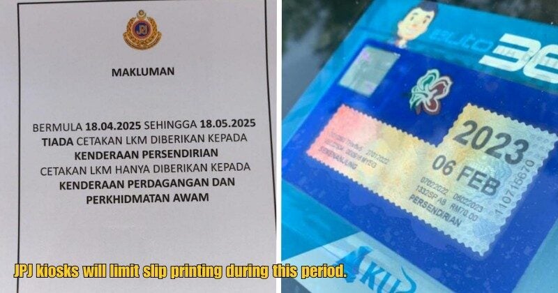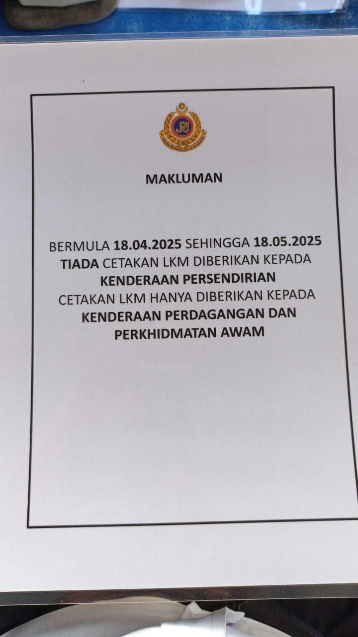 The Director of Vehicle Licensing mentioned that printing LKM slips at JPJ kiosks will be limited during this period.