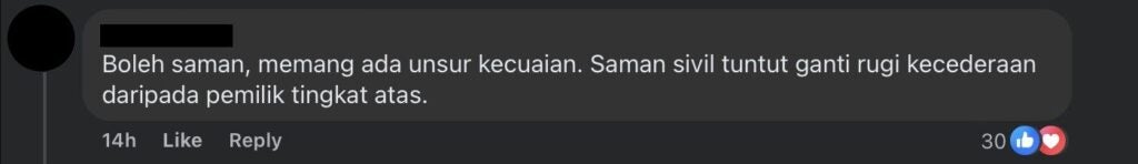 They wrote, “My younger sibling’s apartment in Kepong. Someone from the floor above poured acid down the drain, and my sibling’s child paid the price. All of a sudden, the pipe expanded and leaked. The smell of sulfur was so strong. By chance, their 6-year-old child was showering and screamed because the acid entered their eyes.”