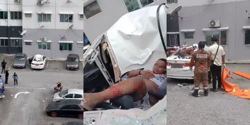 A video of a man who crashed into a car after falling from the 10th floor at Projek Perumahan Rakyat (PPR) Sri Aman Flat, Jinjang, Kuala Lumpur, has made its rounds on social media.