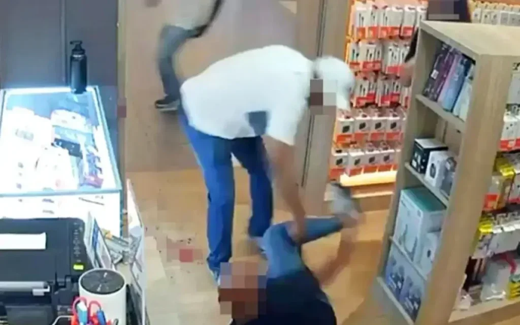 A viral CCTV footage of a phone and computer accessory store in Seremban shows a shocking incident when a man came running in before falling on the ground.