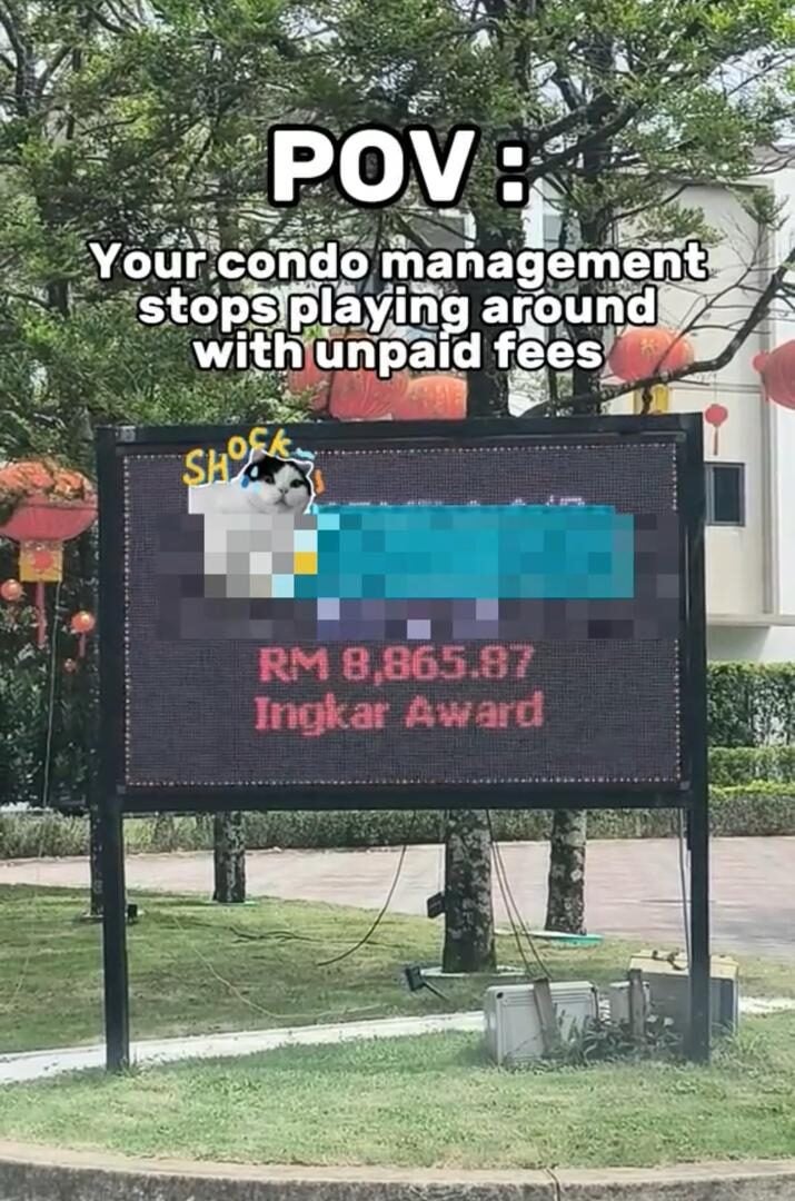 Based on the 15-second video, the first owner owed RM5,346.30, followed closely by another who owed RM8,865.87, and the last owner owed a whopping RM15,149.50 in outstanding maintenance fees.