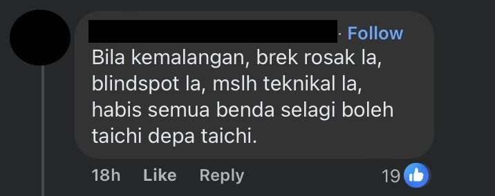 “When an accident happens, (he’ll say) the brakes are not functioning lah, it was a blindspot lah, technical problems lah. As long as there are ways to deflect, he’ll deflect.”
