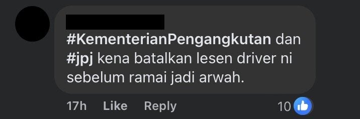 “The Ministry of Transport (MOT) and the Road Transport Department (JPJ) have to revoke this driver’s license before people die.”