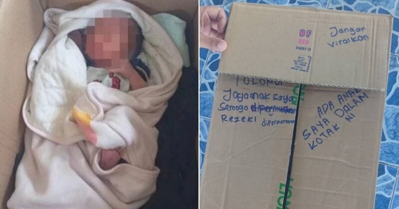 A baby girl was abandoned inside a box in Sabah with a message written on it
