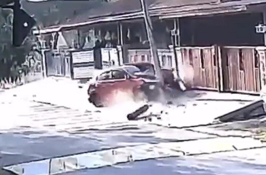 In the clip shared by MYNEWSHUB, the man is seen sweeping outside in a neighbourhood area when the car suddenly hits him, and slams into an electric pole moments later.