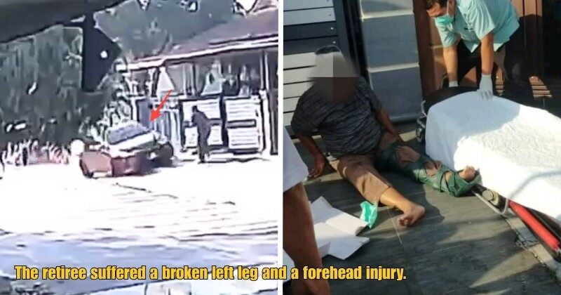 According to Harian Metro, the 61-year-old retiree who was sweeping outside his home in Taman Tiara Perdana, Simpang Renggam, suffered a broken left leg and a forehead injury after being hit by the car.