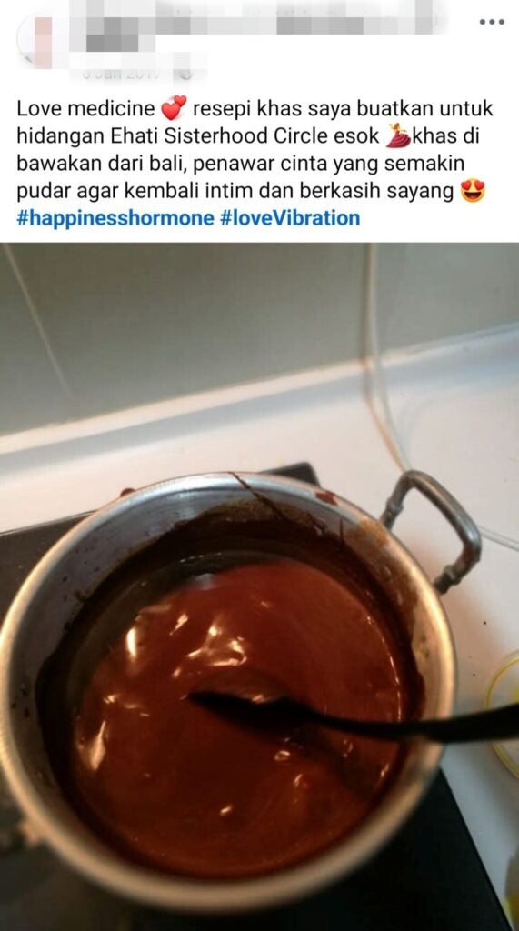 In another Facebook post by one of the participants of the event last year, she claimed that some participants were served with a chocolate beverage, known as Piya. The content of the beverage, however, remains unknown, but the beverage was said to contain “a magical mushroom from Bali”. In one of the videos shared, the beverage was prepped while prayers were also chanted.