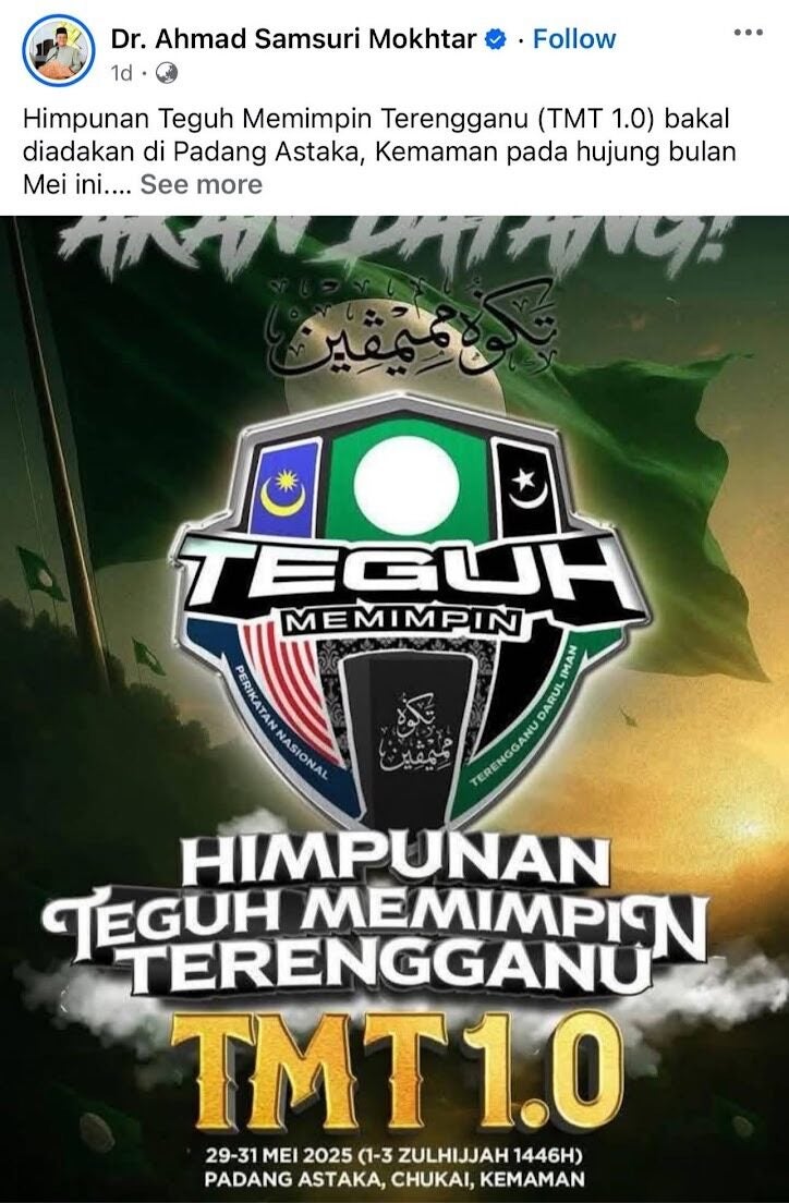 PAS Terengganu has issued a public apology for a design error on its “Himpunan Teguh Memimpin Terengganu (TMT) 2025” event teaser poster, which featured a Malaysian flag with an incorrect number of points on its star.