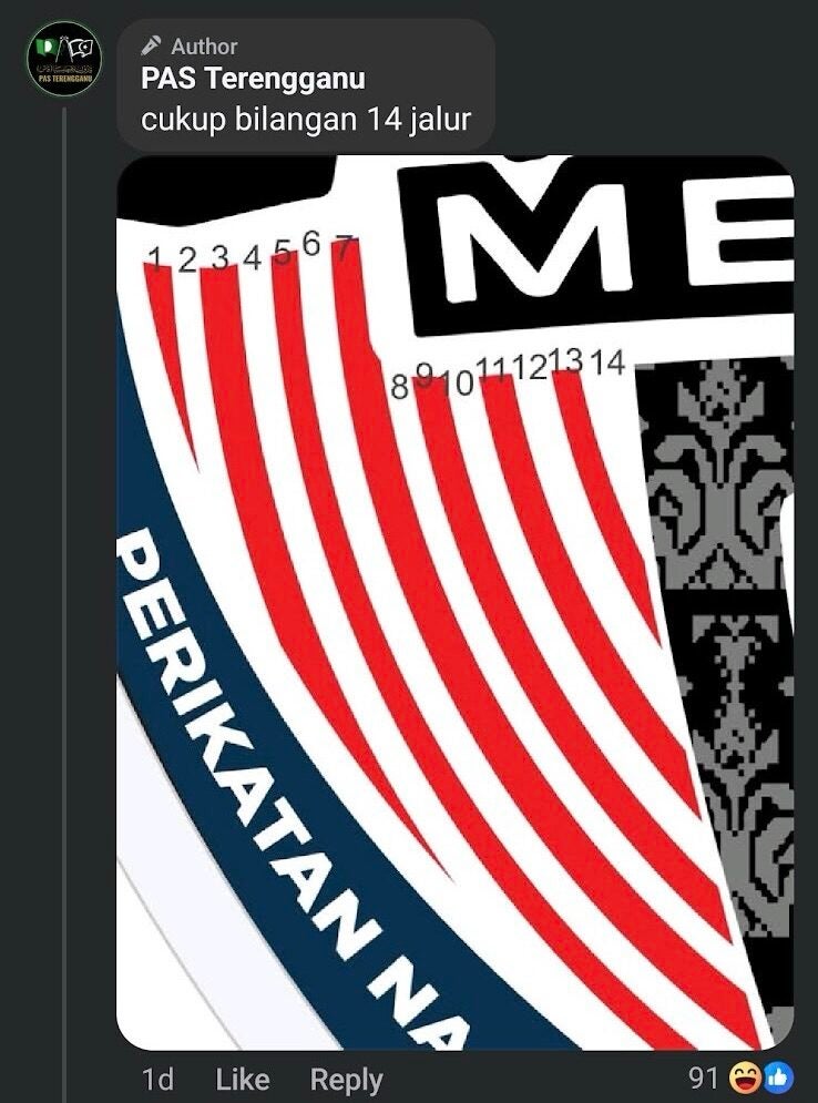 In the comments, PAS Terengganu also directly showed that the Jalur Gemilang on the new logo has 14 points on the Federal Star and 14 stripes.