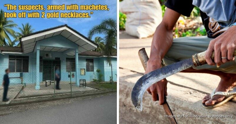 “All 3 suspects, armed with machetes, stormed into the premises and took off with 2 gold necklaces and a phone belonging to the teachers,” he said.