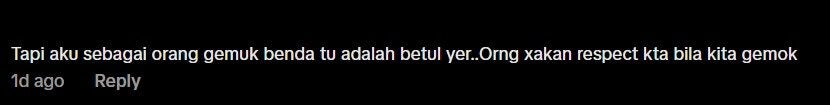 “As someone fat, I agree with what he said. People will not respect us when we’re fat.”