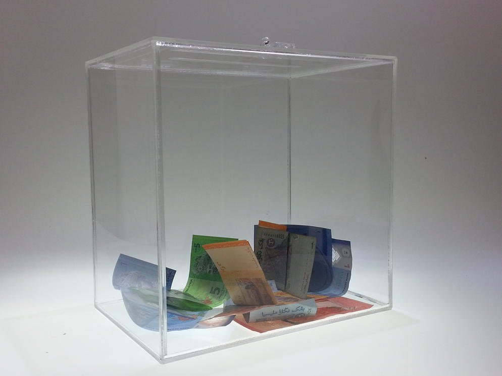 I saw a RM50 note and a RM5 note. He took the RM5 note and put it in his pocket and he slipped the RM50 note into the donation box.