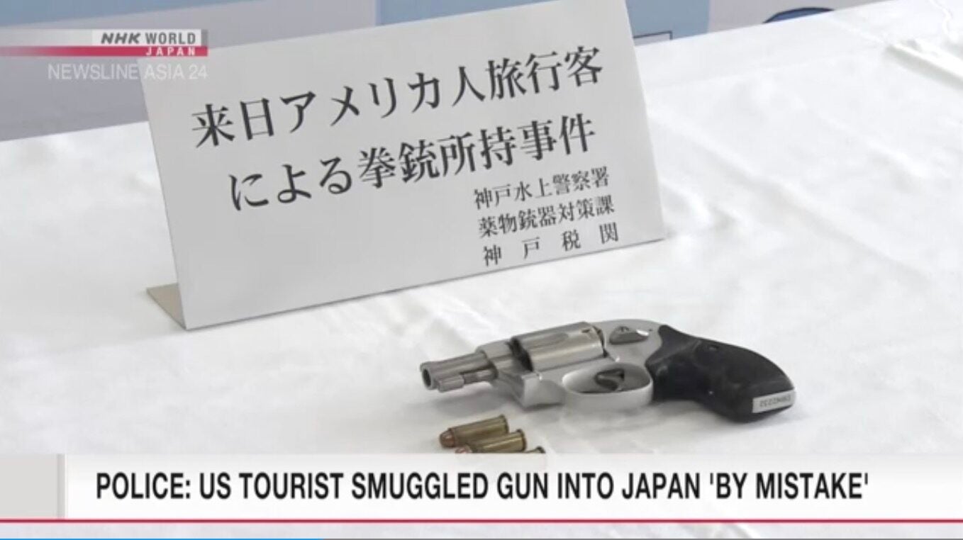 A US tourist was arrested after accidentally bringing a gun to Japan