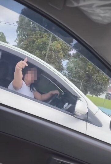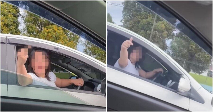 A woman in Kuching, Sarawak was recently caught pointing her middle finger at another driver.