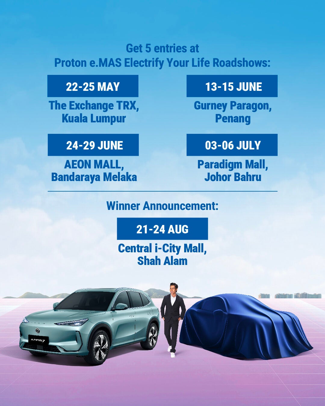 The Proton e.MAS Electrify Your Life Roadshow kicks off today till 25 May 2025 at The Exchange TRX and you have the chance to bring home a Proton e.MAS 5!
