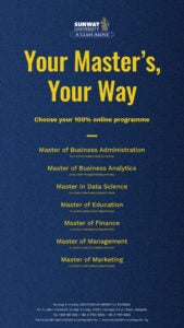 Now that you know how an online master’s can supercharge your career, why put your future on hold? With Sunway University’s online master’s programme, you’re in the driver’s seat — flexible learning, in-demand skills, and limitless career opportunities are just a click away. 🤩